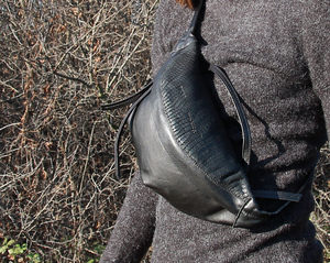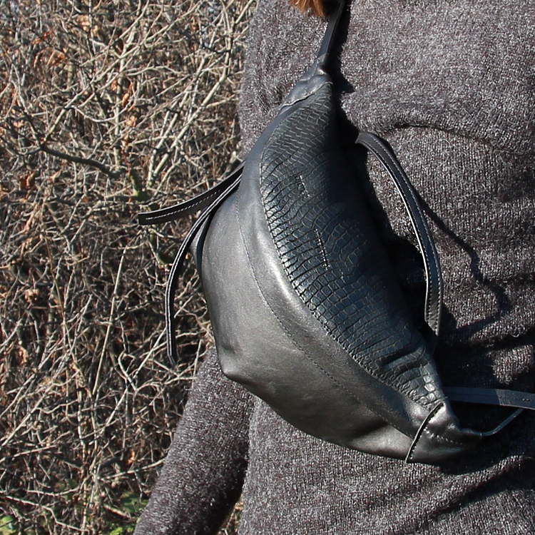 Materiał główny to skóra naturalna (dead stock). Każdy egzemplarz jest nieco inny, może delikatnie różnić się fakturą lub odcieniem.